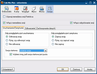 Nie sposób wymienić wszystkie opcje jakie oferuje Tab Mix Plus. Dzięki niemu możemy dopasować zachowanie kart przeglądarki do własnych, nawet bardzo specyficznych potrzeb. Przebrnięcie przez ogrom opcji zajmuje trochę czasu, ale opłaca się. Niestety w niektórych przypadkach, odinstalowanie dodatku może powodować błędne funkcjonowanie menadżera sesji wbudowanego w Firefoxa.